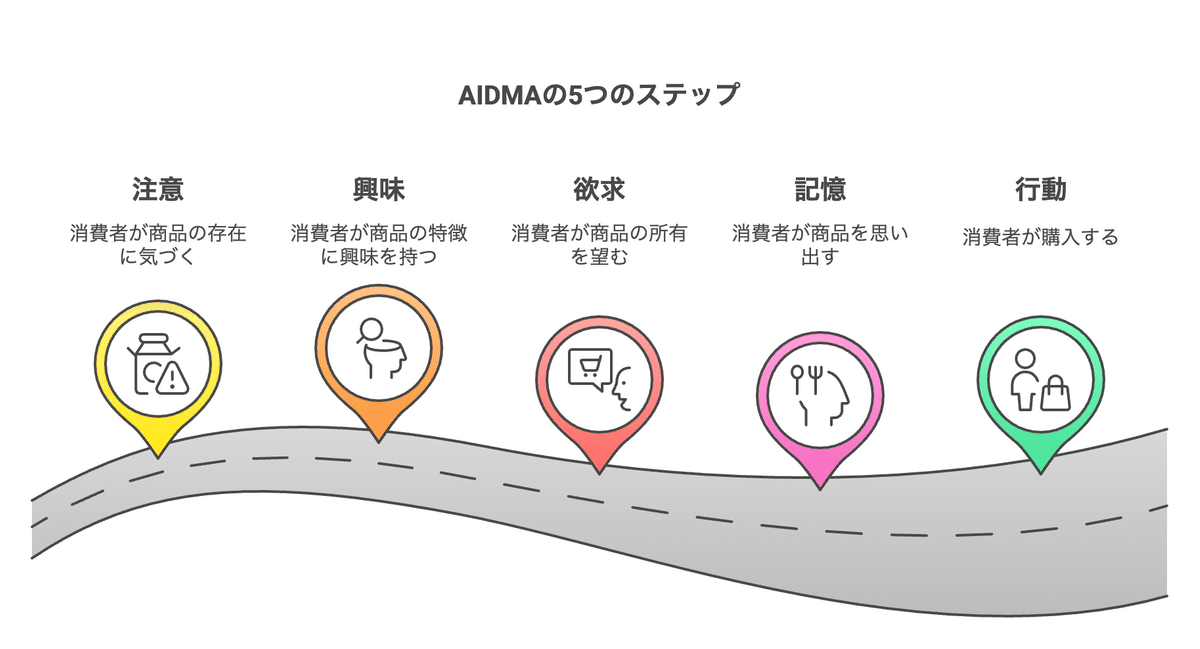 上記のケースは購買行動モデルのAIDMAで考えていただけると分かりやすいかと思います。