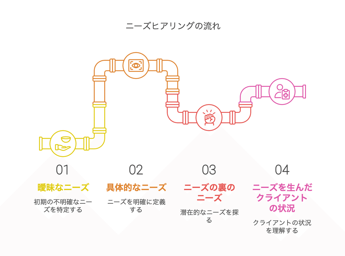 次のフェーズでは、ニーズのヒアリングを行っていきます。